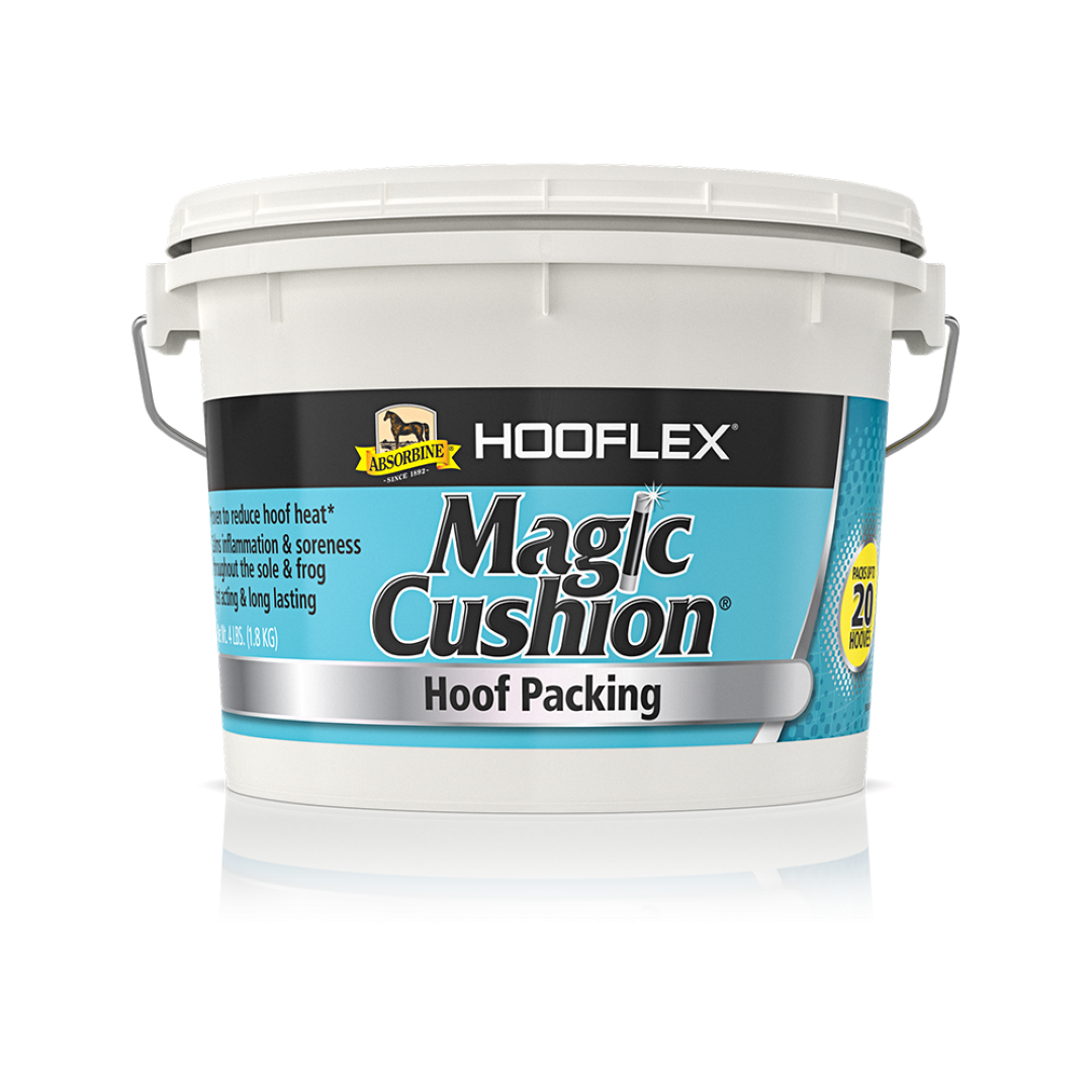 Veterinary formulated to work like magic on sore feet, Magic Cushion® hoof packing starts working to reduce hoof heat within one hour, and then for up to 24 hours*.