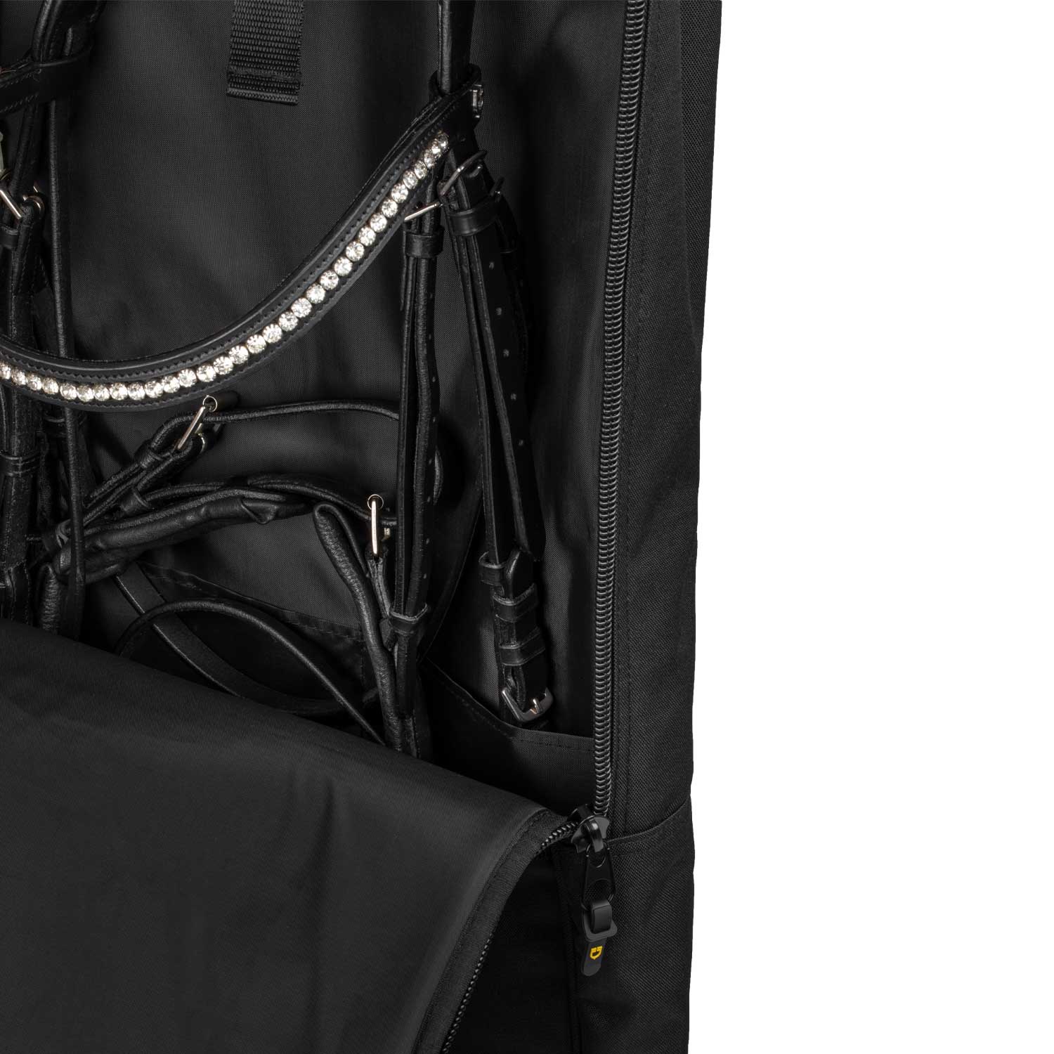 Its smart design ensures excellent ventilation inside, helping to keep the bridles dry and mould-free. Its ergonomic design allows you to store and transport them safely and comfortably, both when traveling and when stored in the stable.