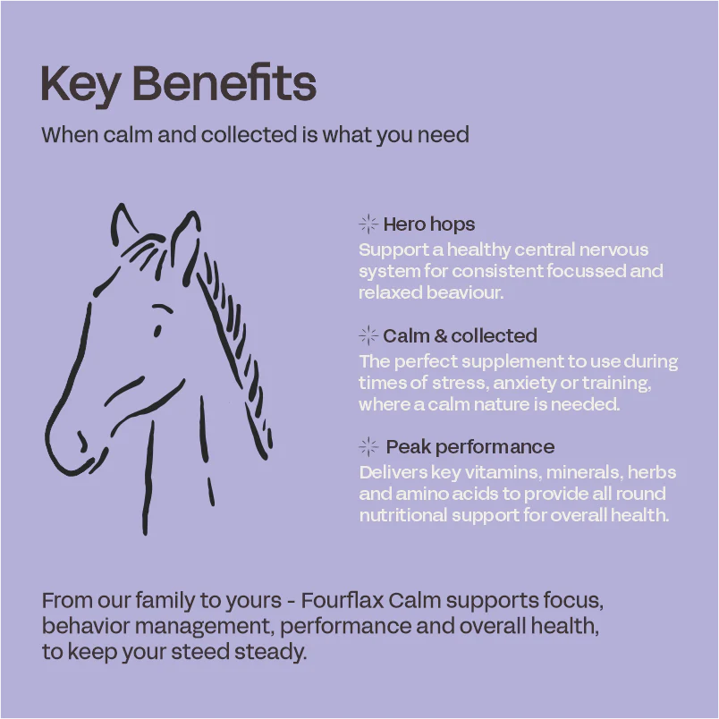 From our family to yours β Fourflax Calm supports focus, behaviour management, performance and overall health, to keep your steed steady.