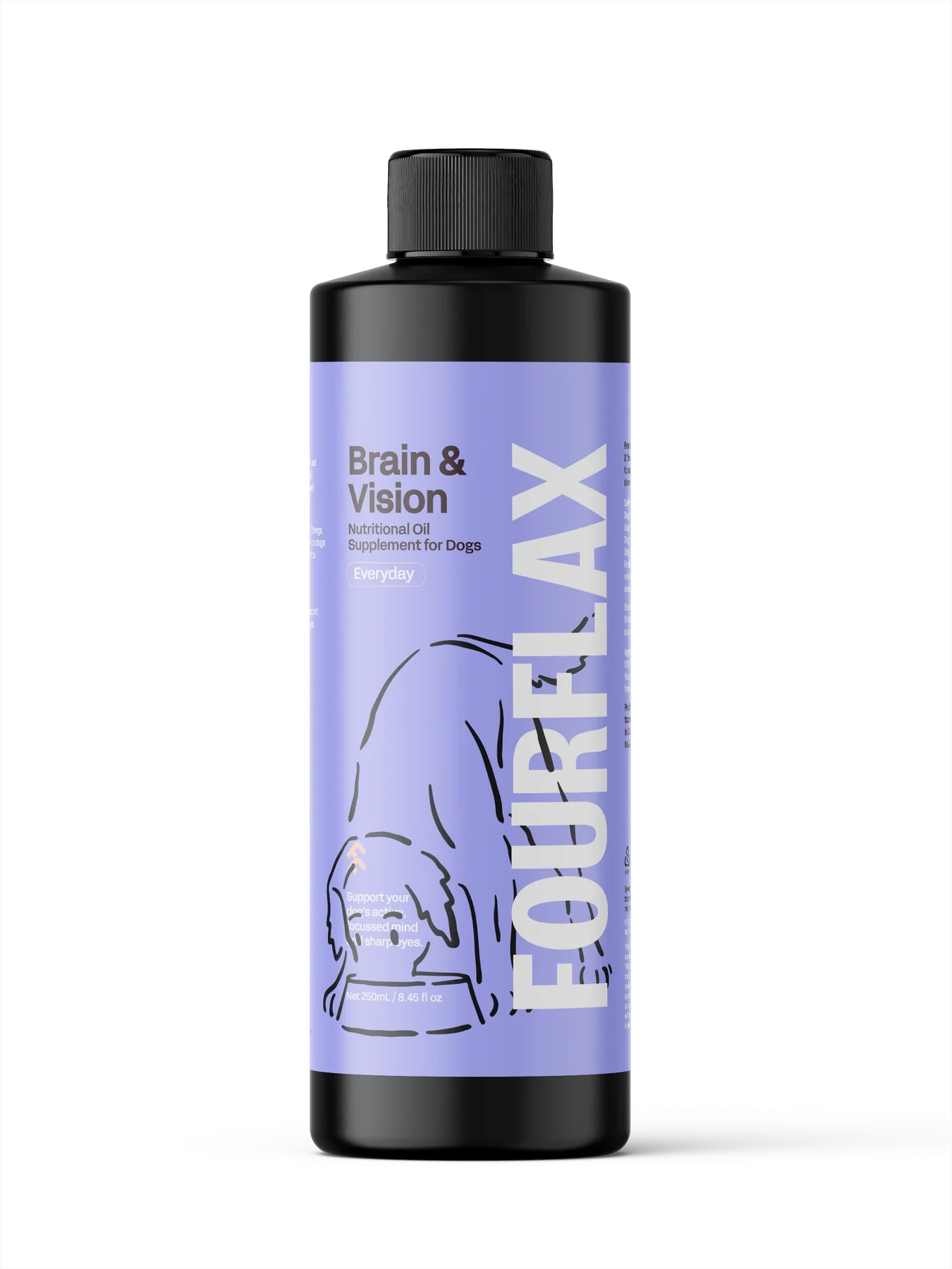 From our family to yours – Fourflax Brain and Vision is the perfect everyday supplement with fish and flax oils to support your dog's cognitive development, healthy eyes and overall wellness.