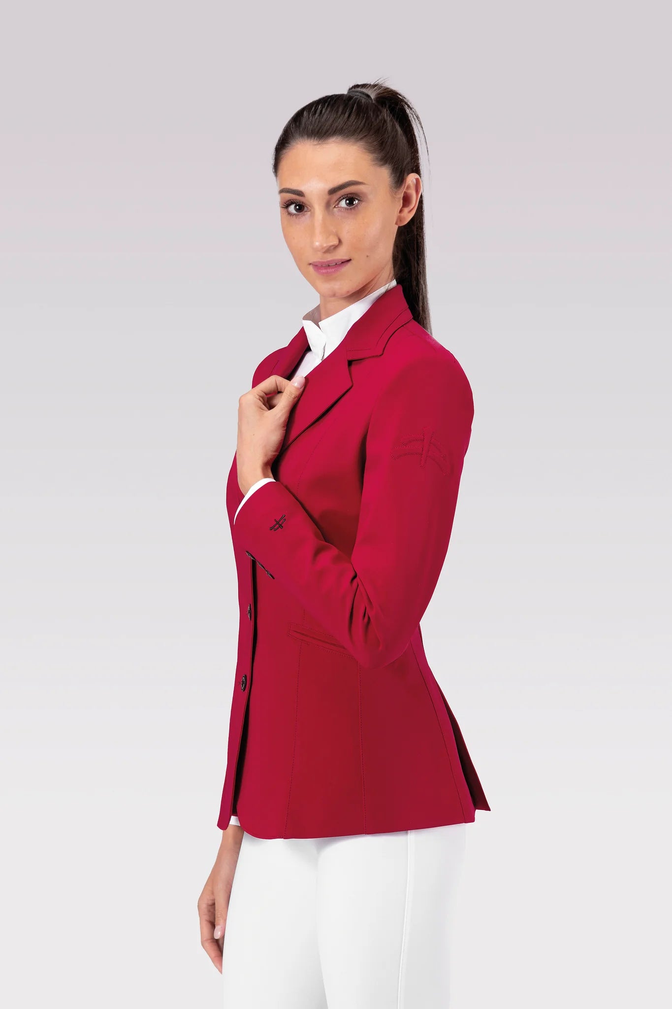 MAKEBE Lady horse riding jacket model ALTEA tech fabric. Composition 50% Poliestere 35,5% Poliammide 14,5% Elastan. To ensure the comfort of movements.