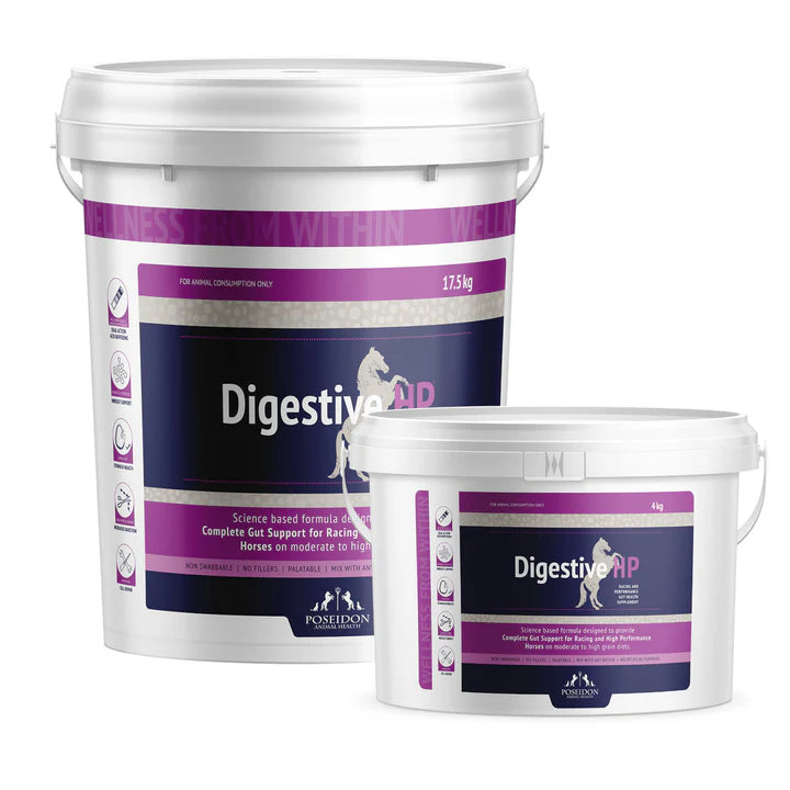 Digestive HP (previously Digestive RP) is a total tract equine gut supplement, designed to meet the needs of high performance sport horses and racehorses. Digestive HP provides increased support for your horse's gut health and essential digestive and immune functions, with extra postbiotics and enzymes to enhance digestion efficacy, and additional amino acids for additional muscle repair and gut support.